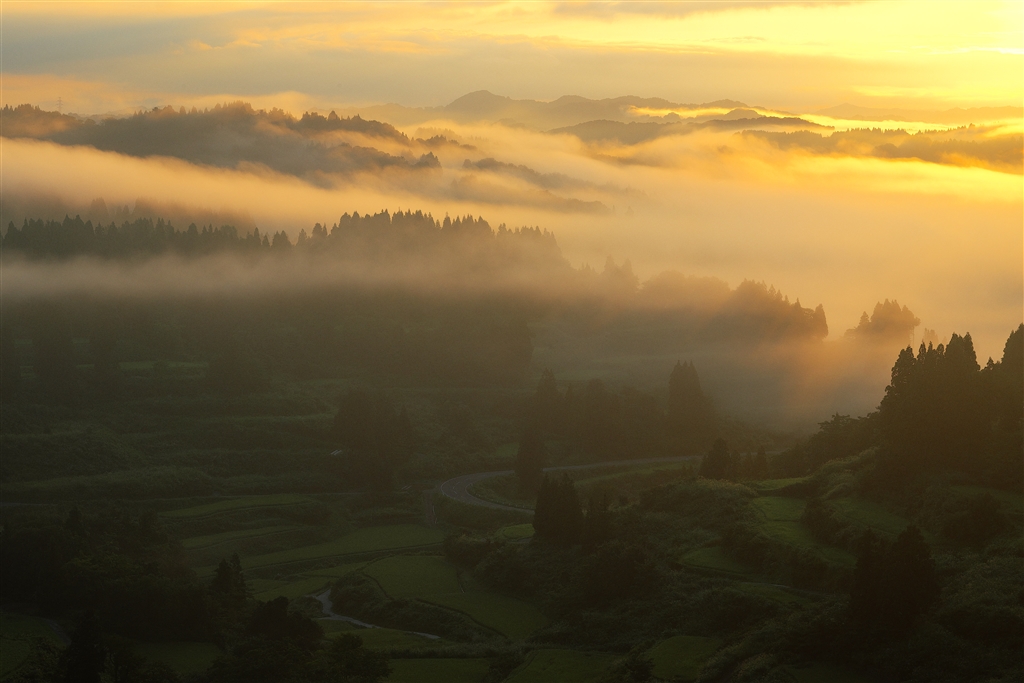 星峠:朝日に染まる雲海です