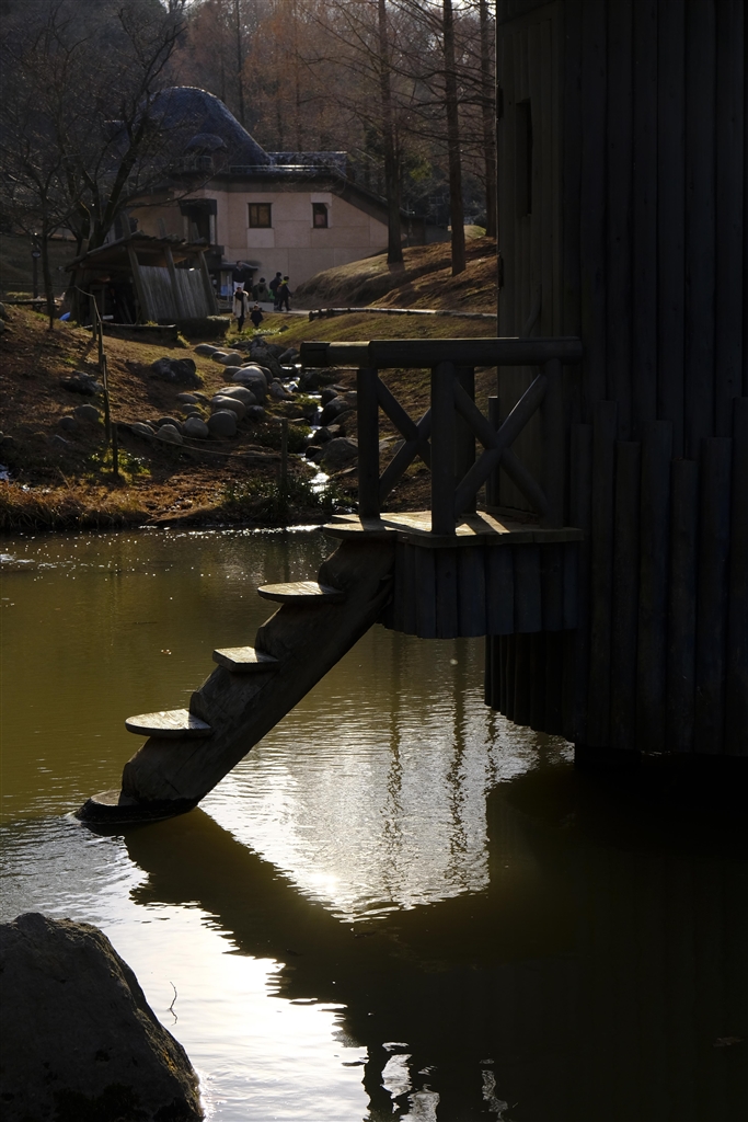 逆光の水浴び小屋の コントラストを強調しました
