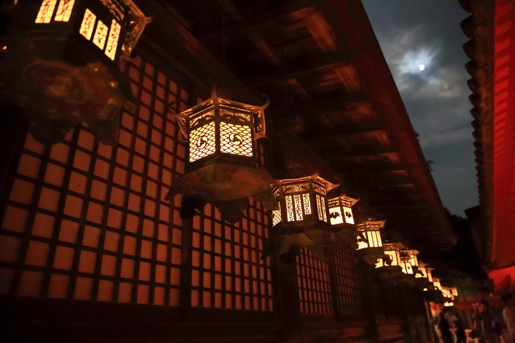 「万灯籠と月に叢雲」 春日大社にて