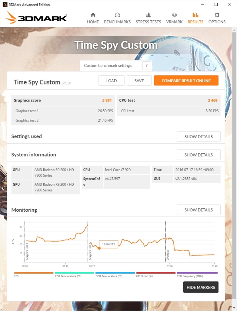 TimeSpy i7 920(FSB150MHz) + HD7970 CF GT1 520W GT2 547W CPU 345W async-off
