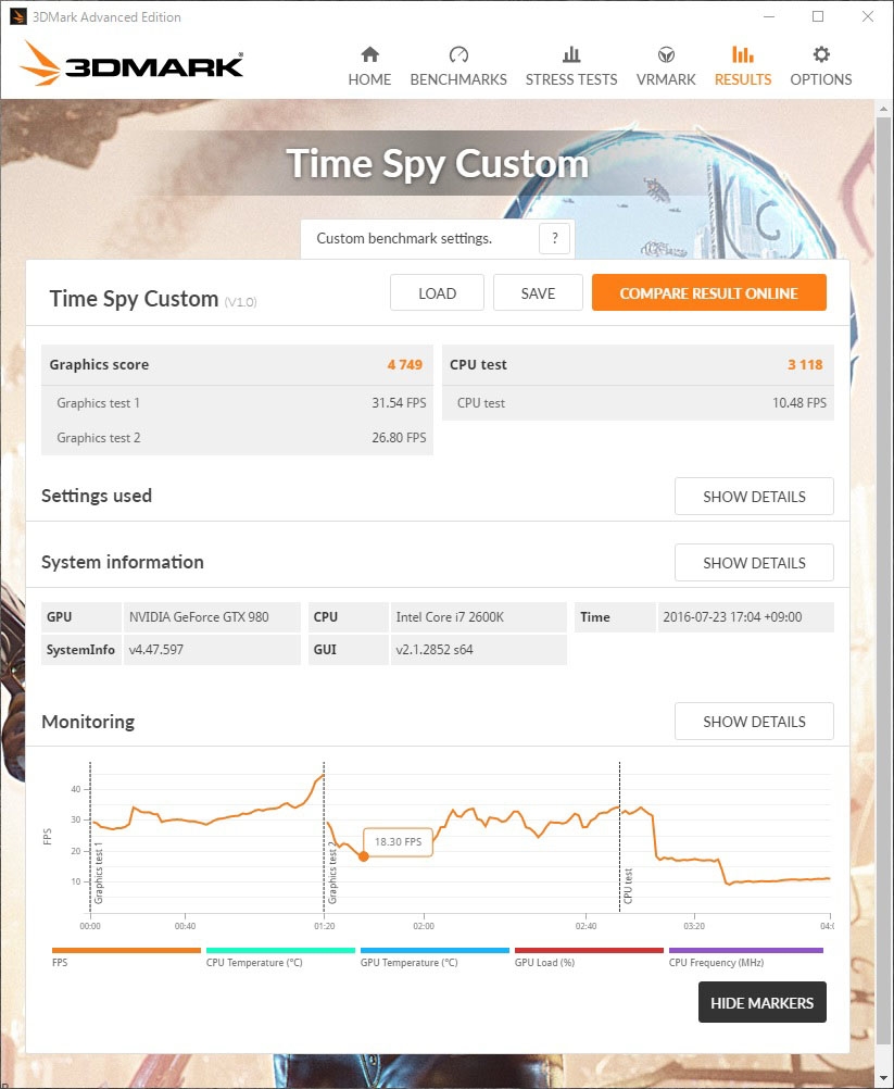 TimeSpy 2600K + 980KINGPIN 1499/8000 GT1 260W GT2 281W CPU 158W 35℃ async-off