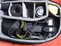 ボディに2kg級ズームレンズ付けて入れるとほぼ他に標準レンズ一本くらいしか入りませんが、あまりカメラバッグぽくない感じが気に入っております。