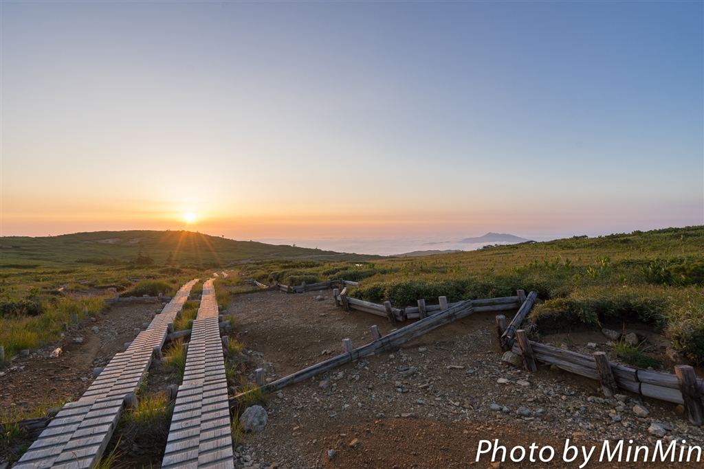 登山路と夕日