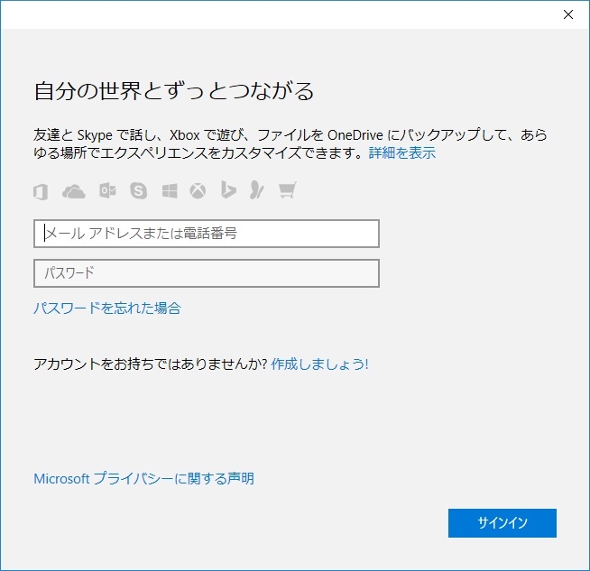 旧パソコン(MSアカウント入力画面)