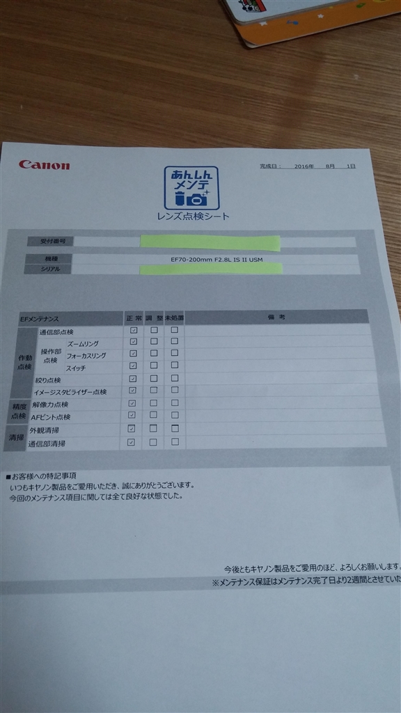 EF70-200mm f2.8L ISU USM 点検結果