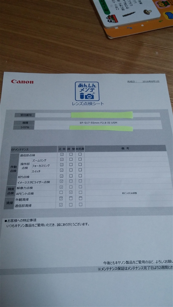 EF-S 17-55mm f2.8 IS USM 点検結果