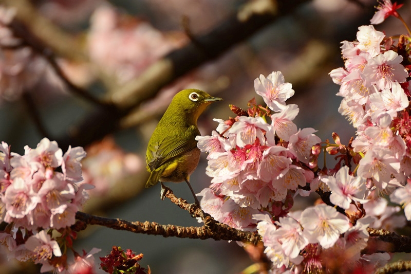 熱海桜とメジロ@ D600で撮影