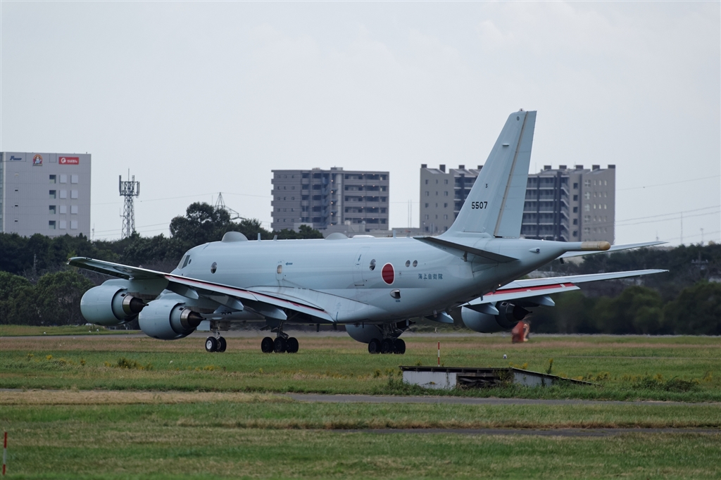 南側エンドに向かう厚木のP-1。離陸直後翼を振ってご挨拶してました。やっぱり静か!