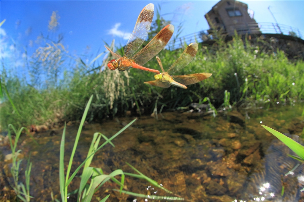 【くる禁】爽やかな秋空の下で最後の仕事(産卵)に取りかかるミヤマアカネのカップル