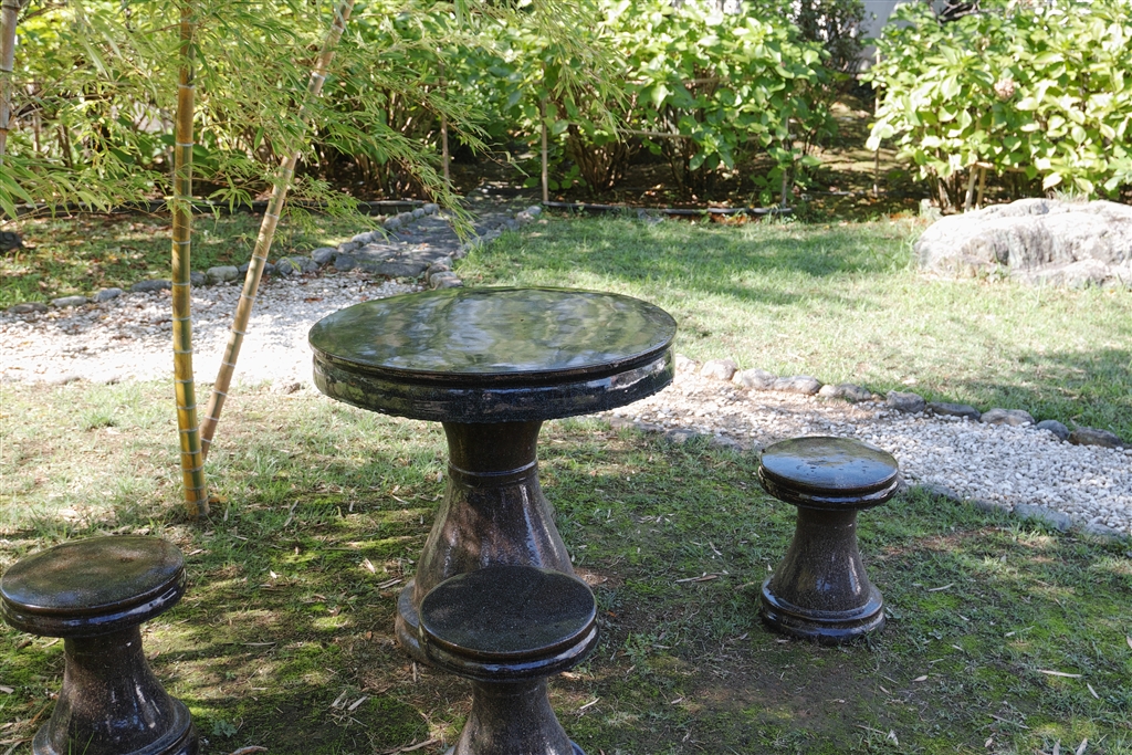 笹の木陰の、石の机に頭を付けて寝てみたい
