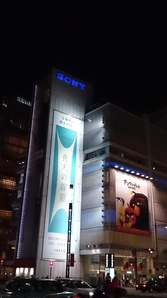 「夜の秋空に青天の霹靂 青の世界」 東京都中央区銀座にて。