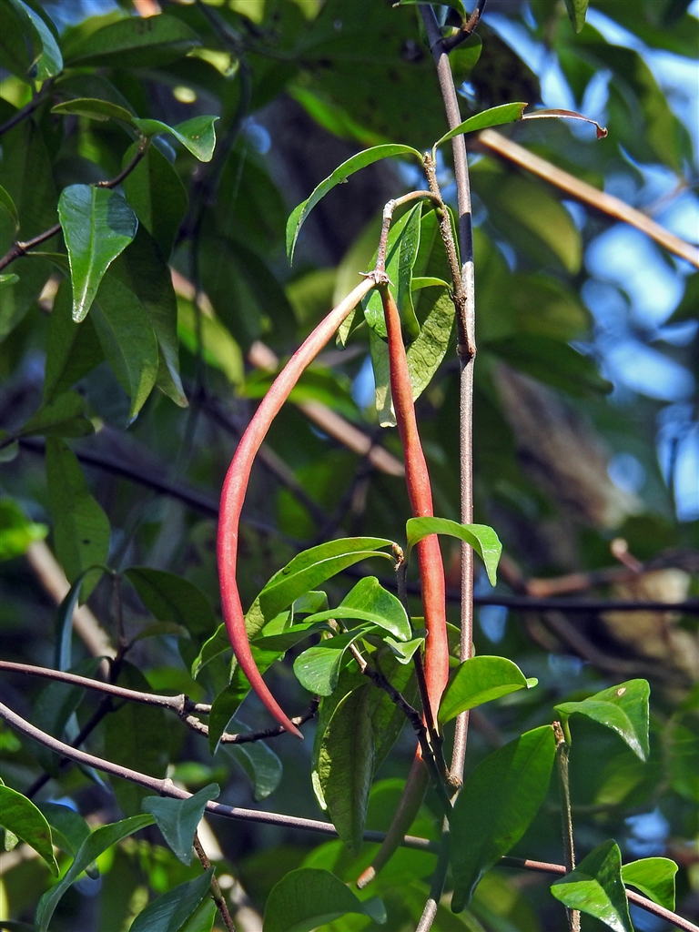 今年11.07 テイカカズラの実 2人の恋で実も鞘で1対。赤→褐色になり中には綿毛の種