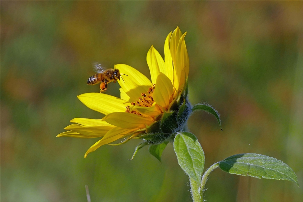 季節はずれのヒマワリとミツバチ(ノートリ)