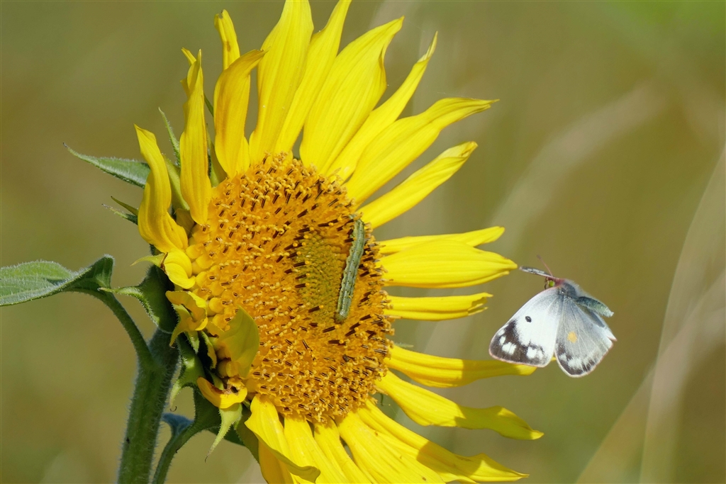 ←ヒマワリとアオムシとモンシロチョウ(ノートリ)