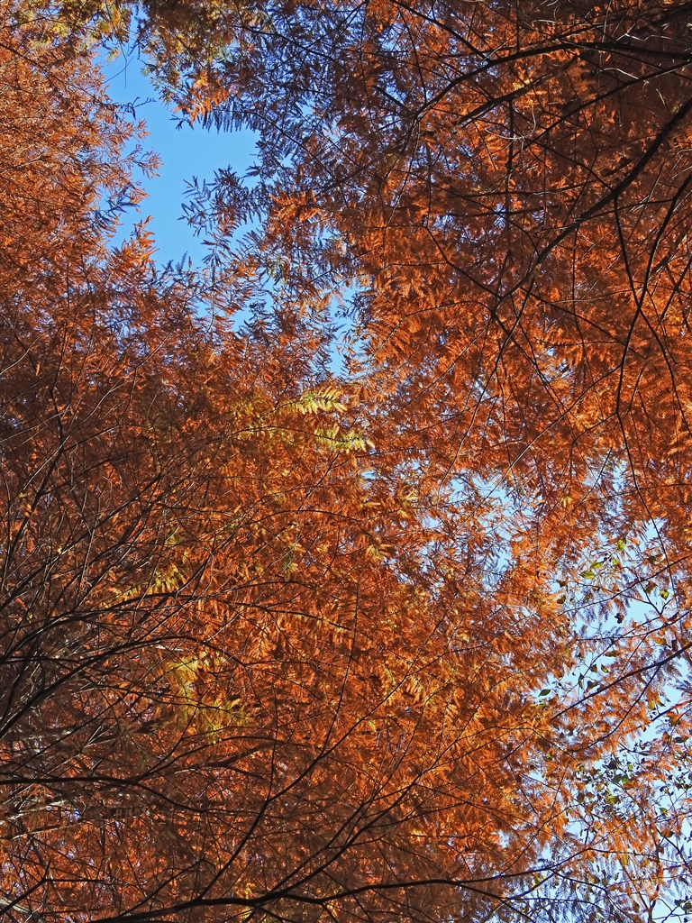 気根で有名なラクウショウ(落羽松)=ヌマスギ(沼杉)の紅葉