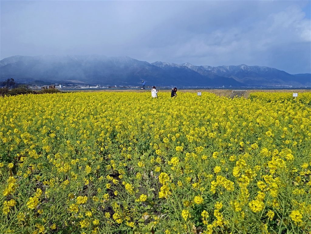 久しぶりに菜の花撮りに 残念ながら比良山系がすっきり見えない