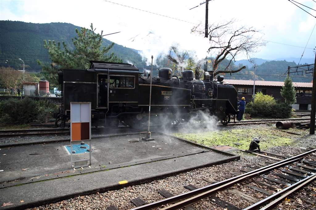 転車台から出ていくSL