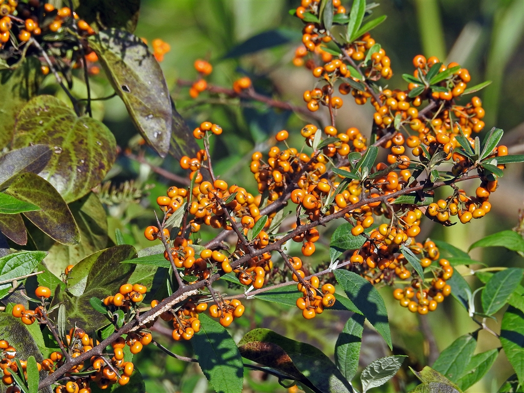 タチバナモドキ(橘擬き)の実 園芸種のピラカンサより葉が細く枝状の長い棘が特徴
