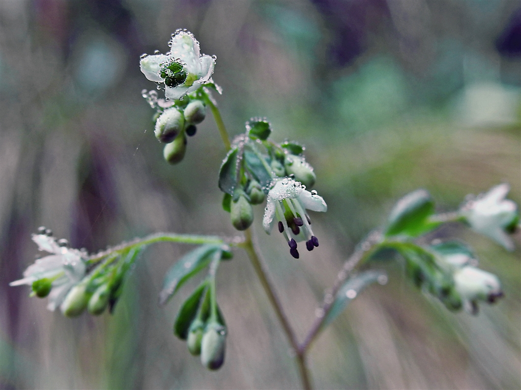 里山の林縁にマツカゼソウ(松風草) 花弁4枚の小さな白花。雄蕊が花外につきでる