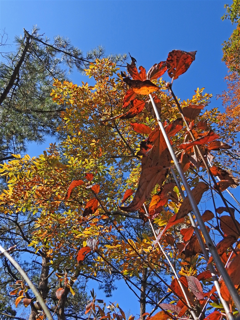コナラ(ブナ科)の黄葉とナツハゼ(ツツジ科)の紅葉
