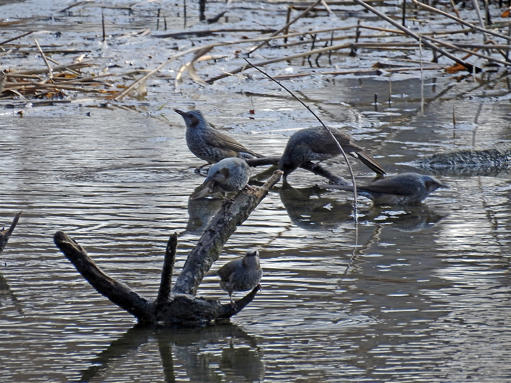 ヒヨドリ達の水飲み場 (35mm換算2000mm)