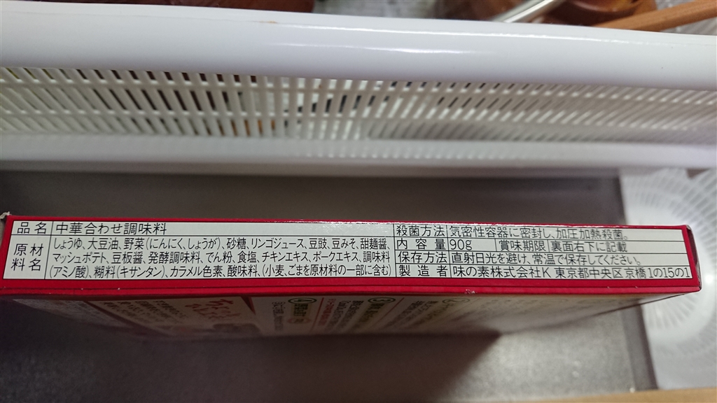 原材料一覧です。リンゴジュース、マッシュポテトが入っています。