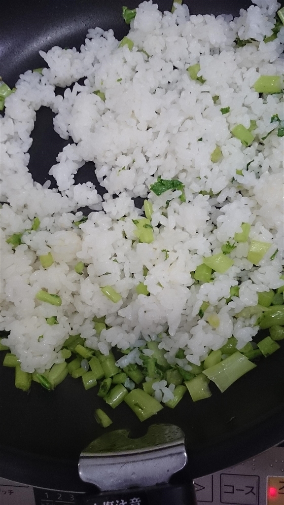 大根の葉とご飯を絡めます。