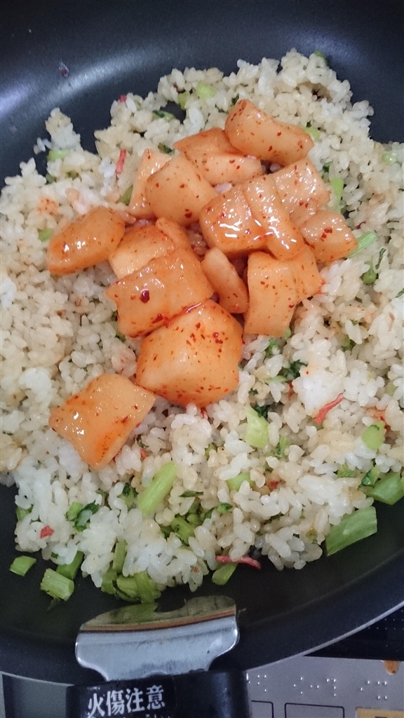 キムチを投入し余熱で炒めあげます。