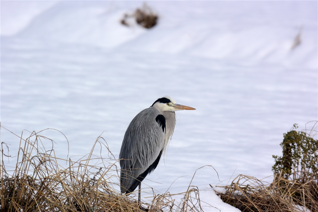 アオサギも雪で映えます