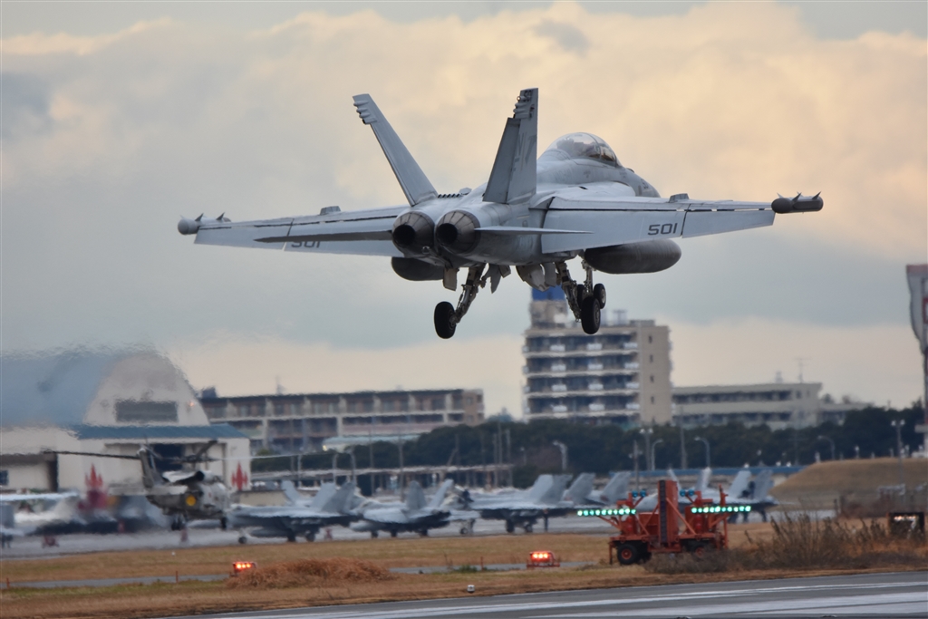 1月9日屋根のあるところに移動して、雨が降る中F-4の後に着陸してきたF-15を写しました。