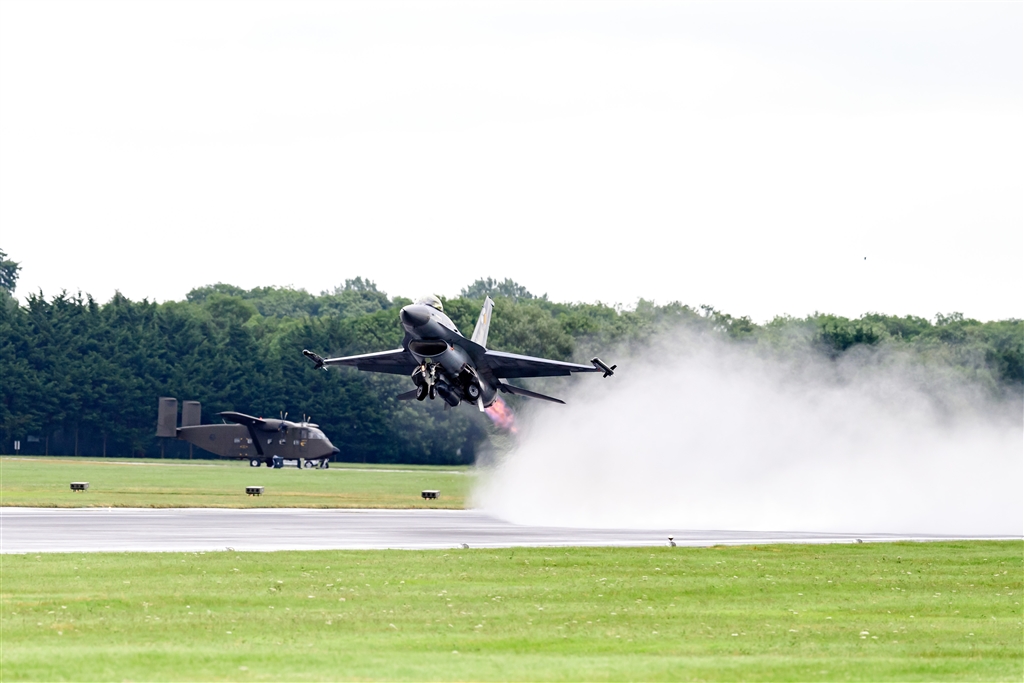 F-16 雨上がりの為水煙が