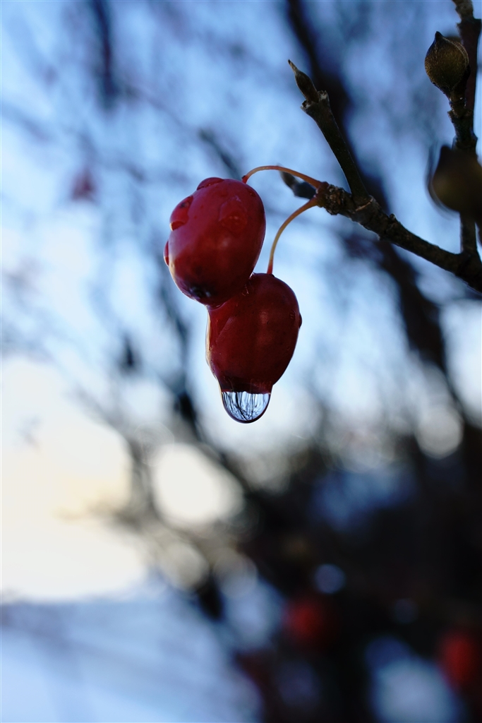 赤い実を少し暗めにして水滴を際立たせてみました