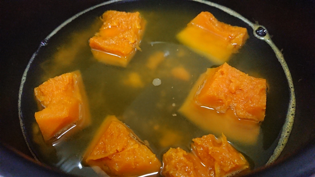 鍋にはった湯に一口大に切ったかぼちゃを投入します。