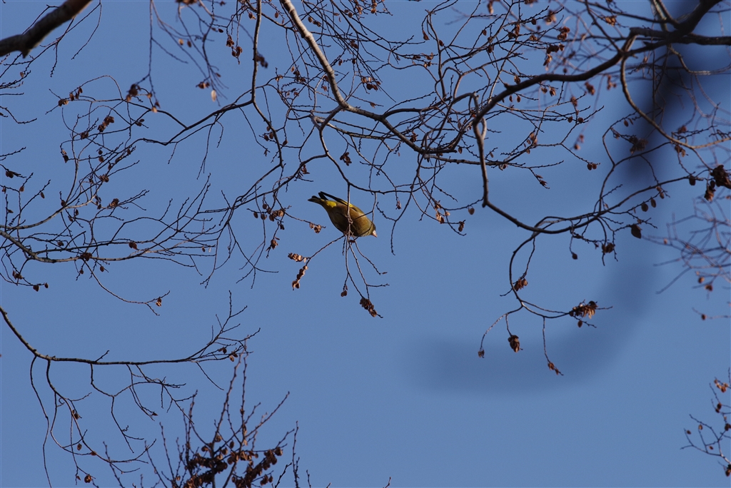 爪楊枝咥えたカワラヒワ? アオジ?