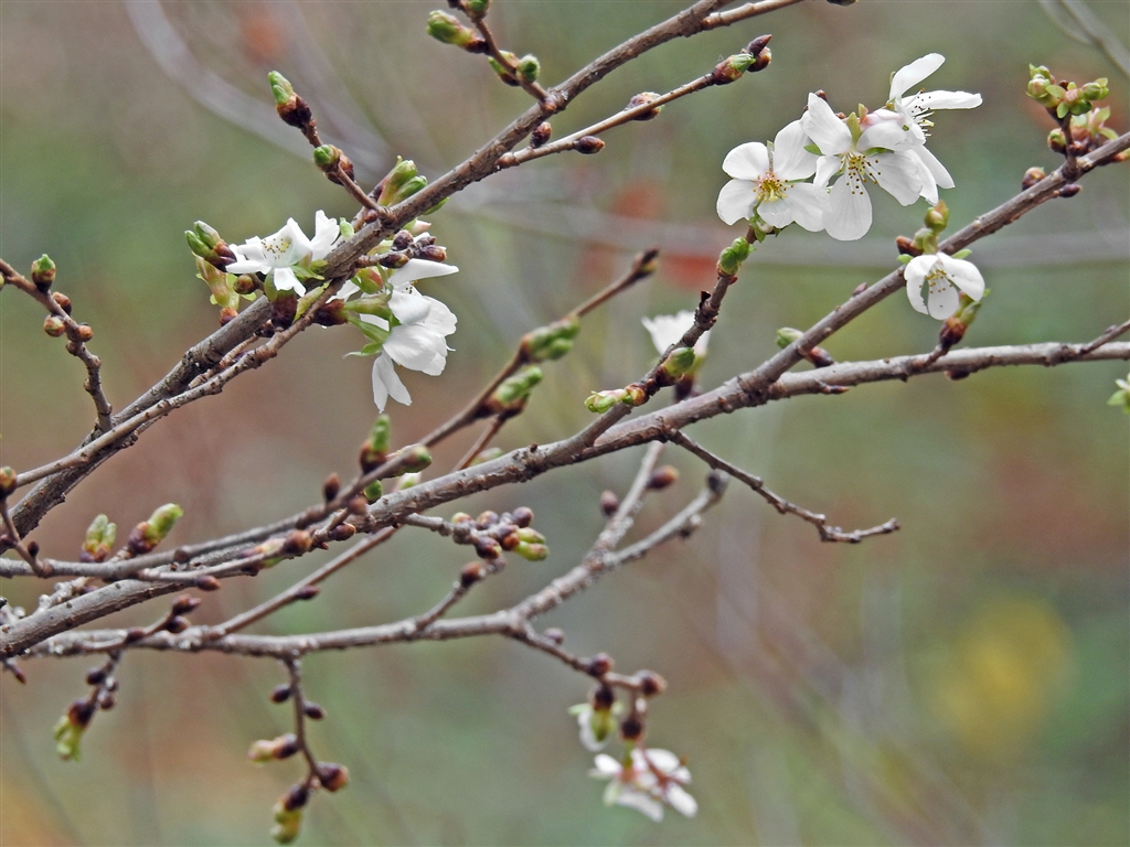 冬桜咲く。別名は小葉桜=四季桜 大島桜と豆桜の交配園芸種で11〜1月&4月の2回開花
