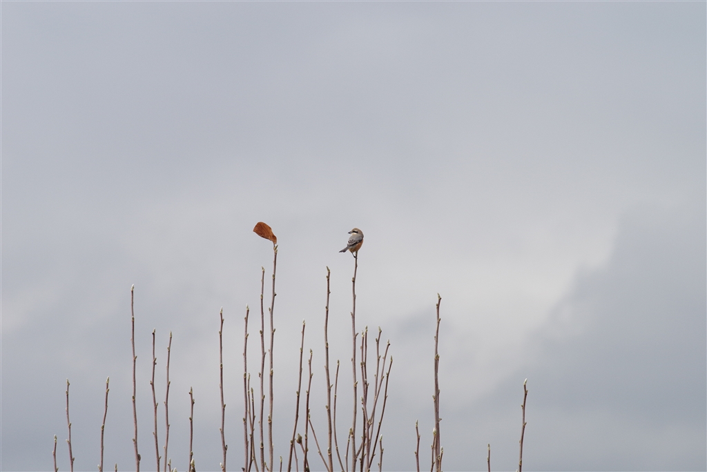 枯葉一葉と百舌鳥