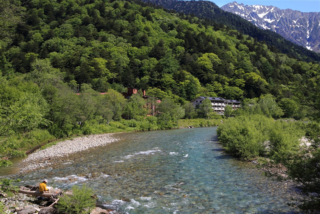 「梓川旅情」 上高地梓川流域にて 残雪の残る穂高連峰