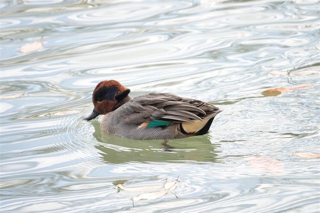 馬見丘陵公園のコガモ・・・風が強くても風になびく頭髪が希望です(^^)