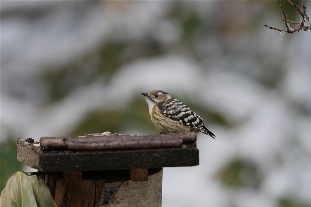 餌台にやって来たコゲラ