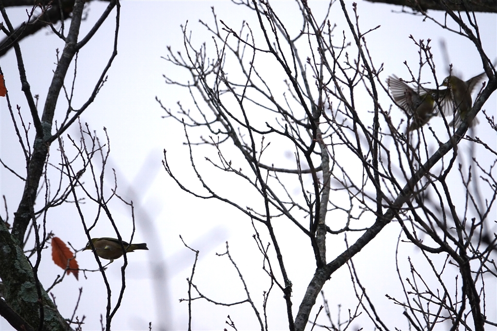 今年の残念な1枚・・・3羽のメジロの巴戦に驚いている間に撃沈