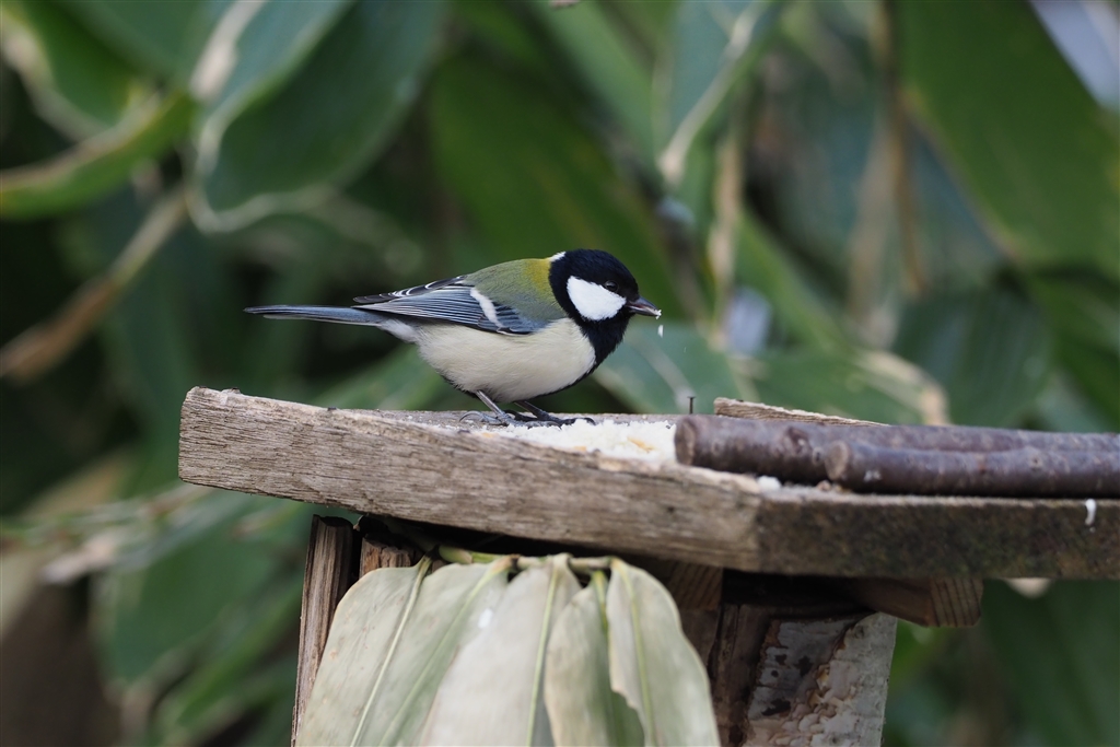 モグモグと餌を食べるシジュウカラ