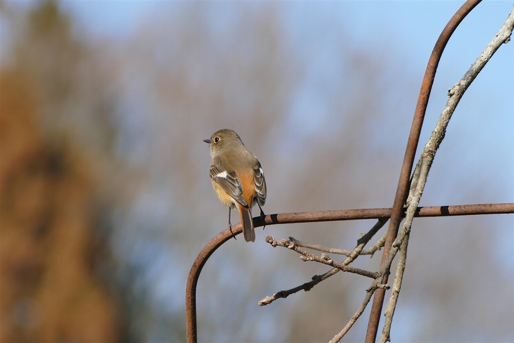 畑でくつろぐジョウビタキ♀