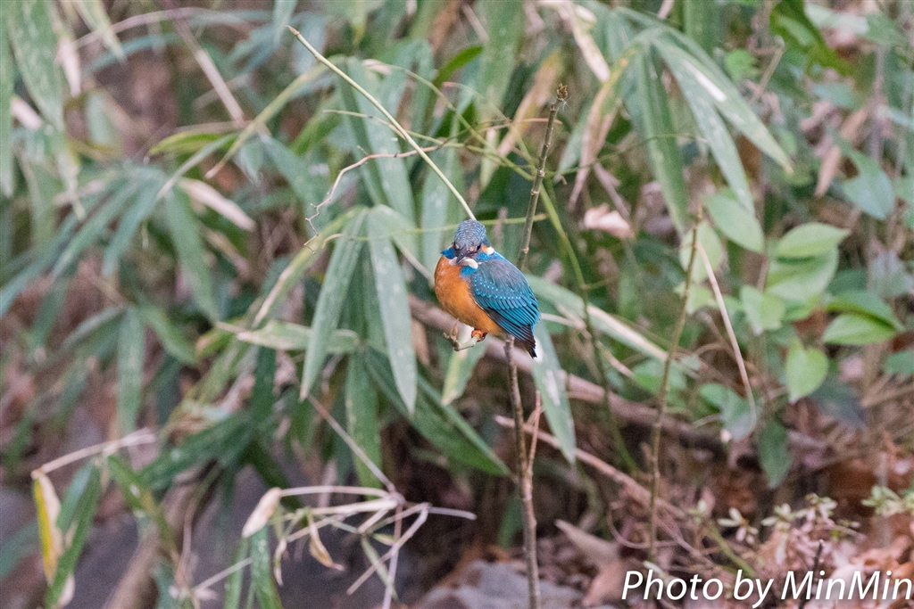 エビをくわえたカワセミさん^^