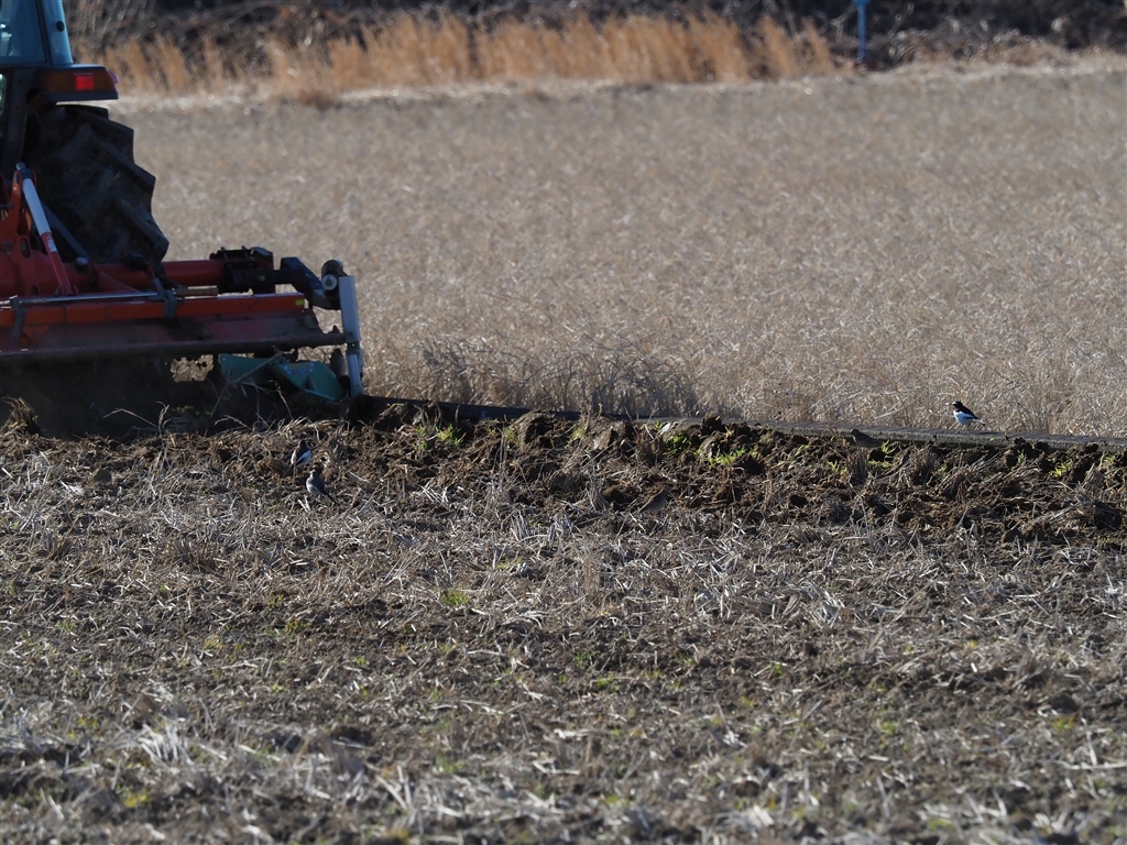 トラクターの後ろは野鳥の楽園