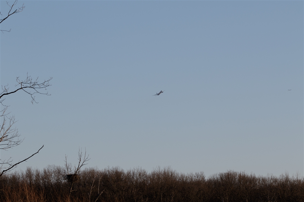 巣の上空を飛ぶANAの飛行機