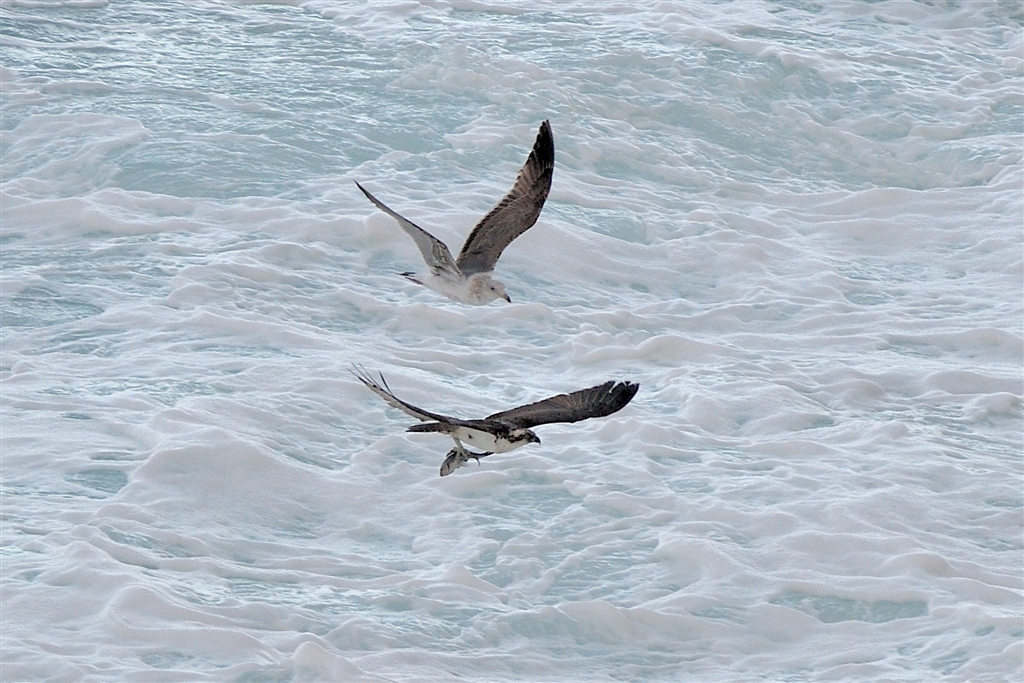 ミサゴの獲物を狙うカモメ、逃げるミサゴ・・・・