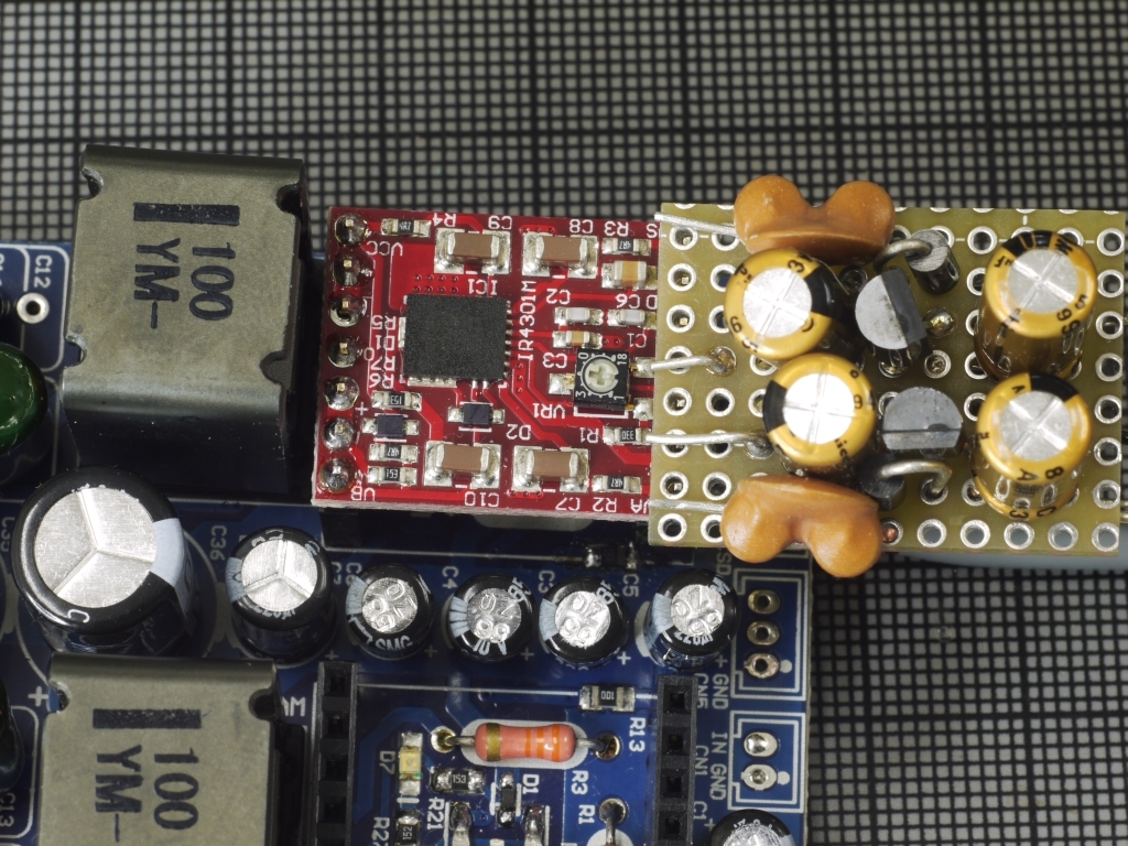 こんなかんじでIR4301基板に直結して±5V供給します。