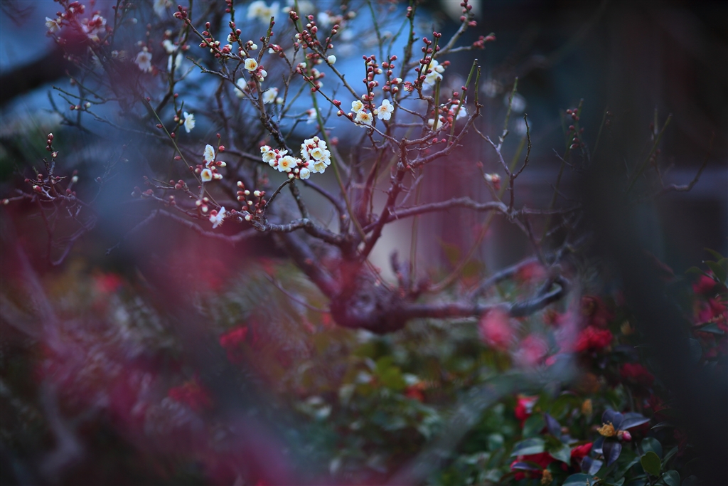 「寒椿 席を譲りて 梅白し」