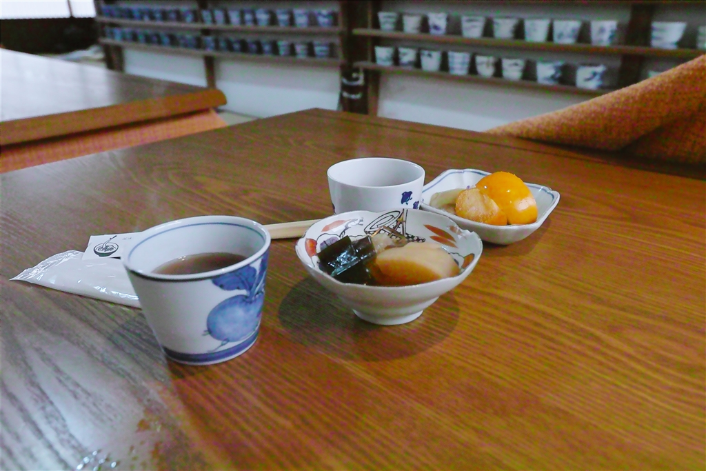 蕎麦の付け出し、奥のは渋柿の漬け物