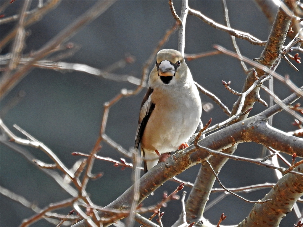 シメ♂ 正面顔 もともと目つきが鋭い上に雄なので目元も喉元も黒くてコワイ